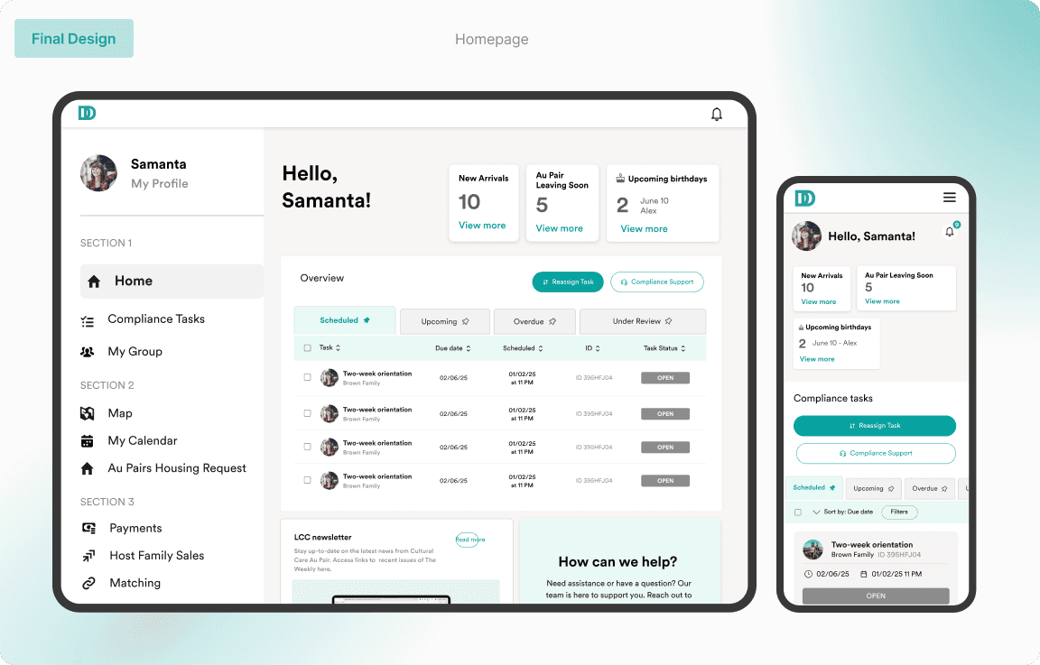 Following the redesign, the portal has driven measurable improvements in efficiency, clarity, and adoption among our LCCs (Local Childcare Consultants). By restructuring the interface around real daily workflows and reducing unnecessary navigation, we saw: